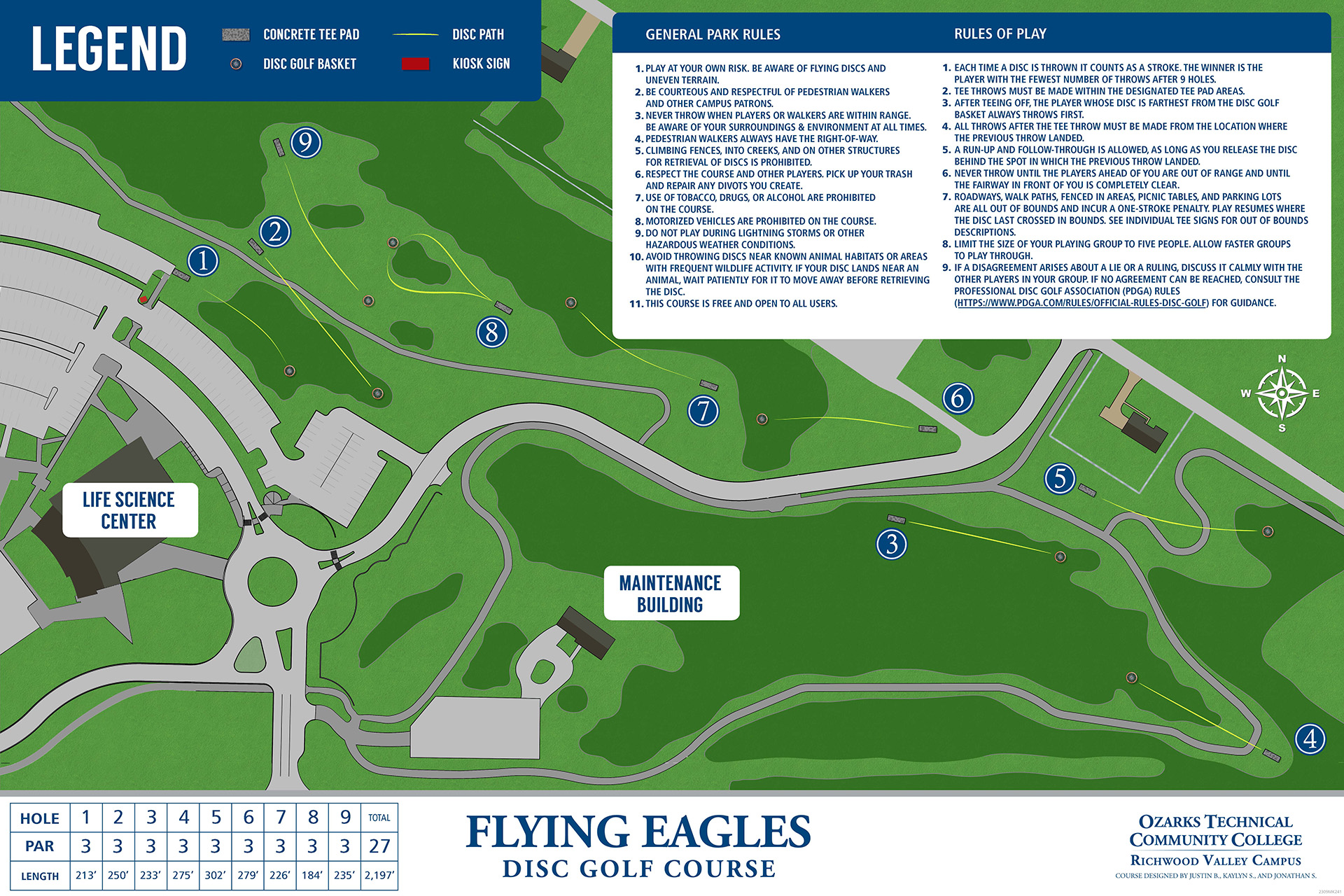 The Flying Eagles Disc Golf Course is a 9-hole course located at the OTC Richwood Valley Campus, right next to the walking trail. Both the course and the trail are open to the public, providing students, employees, and community members with additional opportunities to enjoy the outdoors.
